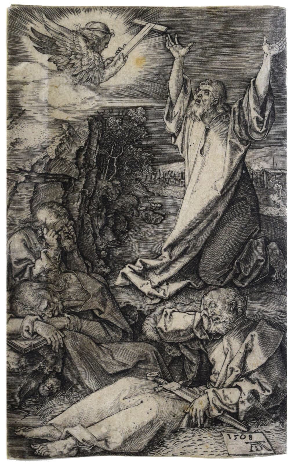 Image: Albrecht Dürer, German, 1471 – 1528, Agony in the Garden (Christ on the Mount of Olives) from the Engraved Passion, 1508, engraving, Museum Purchase. Reading Public Museum, Reading, Pennsylvania.