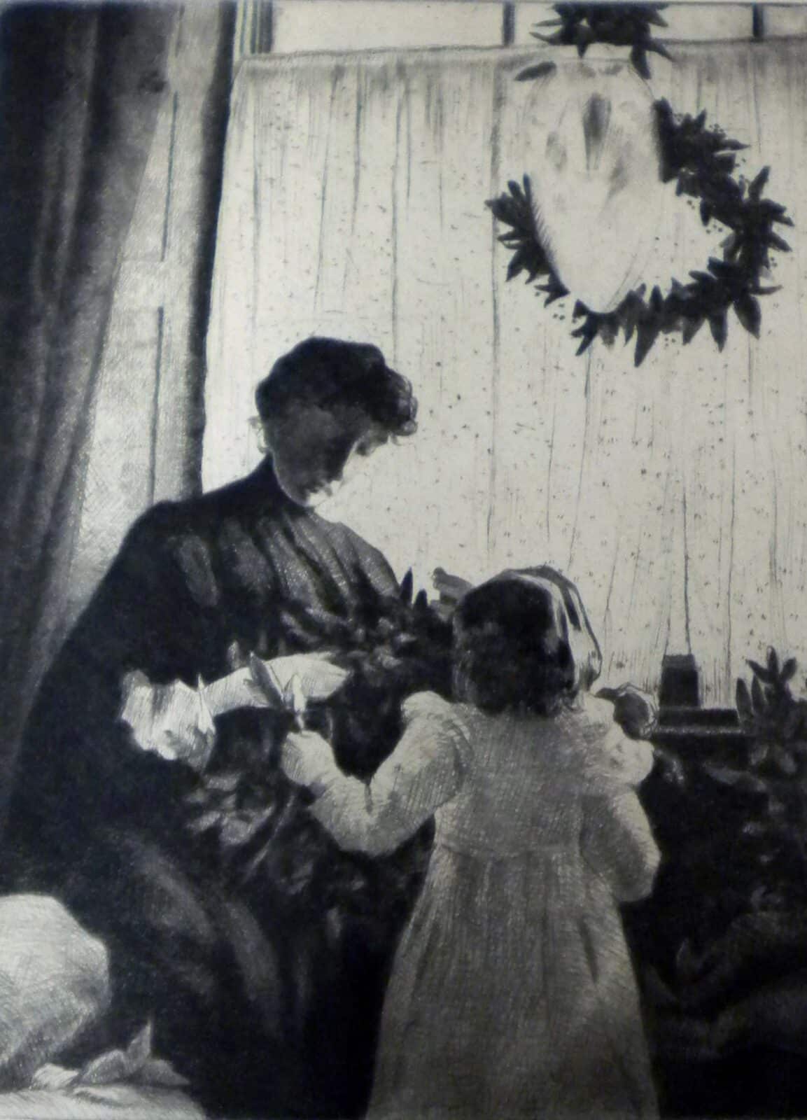 J. Alden Weir (American, 1852–1919), Christmas Greens, 1889, etching and drypoint on paper, 8 x 6 inches. Private Collection.